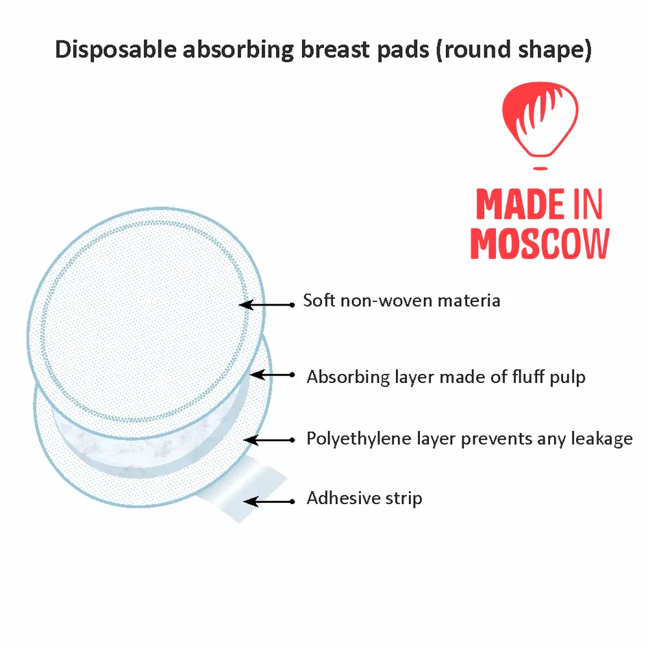 Breast pads by Peligrin are ideally suited for mothers during lactating period. They perfectly absorb liquid and protect the skin of the breast. They are soft, suited for sensitive nipple, do not cause irritation, stay soft during the day, and do not get rough even having absorbed breast milk. They follow the shape of the breast and are unnoticeable from the outside, protect underwear. Our advantages: • All the breast pads that are manufactured by the group of companies Peligrin have EC declarations of conformity and comply with all the European standards of quality. • Soft surface made of non-woven material is ideally suited for sensitive nipples skin. • Absorbing layer made of natural fluff pulp perfectly absorbs breast milk. • Protective layer made of waterproof film prevents any leakage. • Have special adhesive strip that prevents the pad from shifting. • Each breast pad is single-packed. Components: non-woven material, cellulose fluff pulp, waterproof film (polyethylene), glue, release paper (anti-adhesive). Diameter: 110 cm Pack: 30, 60 pcs
