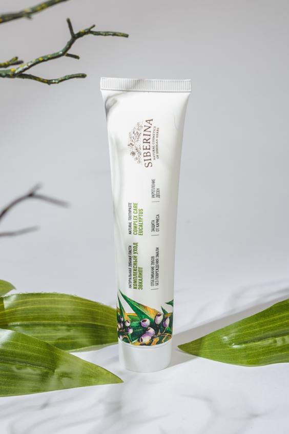 The beauty and health of teeth directly depend on which paste you use. To ensure high-quality cleansing and comprehensive oral care, try natural Eucalyptus toothpaste. It effectively removes dirt and plaque, strengthens the gums, prevents the formation of caries and keeps fresh breath for a long time. - RDA 70 (toothpaste abrasiveness index) - Teeth whitening without enamel damage - Caries protection - Gum strengthening is made from high-quality natural ingredients. It does not contain fluoride, SLS, parabens, triclosan, aggressive abrasives, artificial preservatives, flavors and dyes. action: SILICON DIOXIDE gently cleanses and polishes teeth without damaging the enamel. EUCALYPTUS ESSENTIAL OIL fights bacteria and inflammation of the mucous membrane, and is also effective in the treatment of periodontal disease. ALOE VERA EXTRACT soothes, reduces swelling and bleeding gums. GREEN TEA EXTRACT reduces tooth sensitivity and prevents the growth of bacteria that cause caries. EXTRACTS OF OAK BARK AND MINT reduce bleeding gums. PRECAUTIONS: do not use if the components are individually intolerant. Keep away from children! Do not swallow! STORAGE CONDITIONS: store at a temperature of +5°C and not higher than +25°C. VOLUME: 75 ml SHELF LIFE: 2 years, after opening, store for 6 months STRUCTURE: Aqua, Glycerin, Sorbitol, Hydrated silica, Xylitol, Hydroxyapatite/Calcium carbonate, Sodium cocosulfate, Sodium benzoate, Potassium sorbate, Xanthan gum, Menthol, Eucalyptus globulus leaf oil, Tocopheryl аcetate, Aloe arborescens leaf extract, Chamomilla recutita flower extract, Camellia sinensis leaf extract, Quercus robur bud extract, Mentha piperita leaf extract, Vetiveria zizanoides root oil.