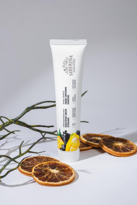 A snow-white smile is the secret of your attractiveness and a sign of beautiful and healthy teeth. But what to do if the enamel has lost its natural color and darkened? The easiest and most affordable way to achieve white teeth at home is the natural whitening toothpaste "Coal". Its formula is designed to gently whiten the enamel and give it a natural shine without damaging the structure. - RDA 110 (toothpaste abrasiveness index) - Prevention of tartar - Protection against caries - Intensive whitening Made from high-quality natural ingredients. Does not contain fluoride, SLS, parabens, triclosan, aggressive abrasives, artificial preservatives, flavors and dyes. SILICON DIOXIDE gently cleans and polishes teeth. ACTIVATED CHARCOAL is a natural adsorbent, removes plaque and makes enamel several tones lighter. EUCALYPTUS ESSENTIAL OIL fights bacteria and inflammation in the oral cavity. ALOE VERA EXTRACT, CHAMOMILE EXTRACT AND ESSENTIAL OIL soothe gums, have a pronounced anti-inflammatory and antimicrobial effect. PRECAUTIONS: use no more than 1-2 times a week. Do not use if you are hypersensitive to the components. Keep out of reach of children! Do not swallow! STORAGE CONDITIONS: store at a temperature of +5°C and not higher than +25°C. VOLUME: 75 ml SHELF LIFE: 2 years, after opening store 6 months COMPOSITION: Glycerin, Aqua, Hydrated silica, Xylitol, Hydroxyapatite/Calcium carbonate, Sodium cocosulfate*, Zinc citrate, Sodium benzoate, Potassium sorbate, Xanthan gum, Tocopheryl acetate, Citrus limon peel oil, Menthol, Eucalyptus globulus leaf oil, Citric acid, Matricaria recutita flower oil, Bisabolol, Aloe arborescens leaf extract, Chamomilla recutita flower extract, Charcoal powder, Polyglyceryl-10 stearate, Polyglycerin-10, Polyglyceryl-10 myristate, Sodium dehydroacetate. * is a mild surfactant derived from coconut oil, is not hazardous SLS, permitted by the international ECOCERT standard