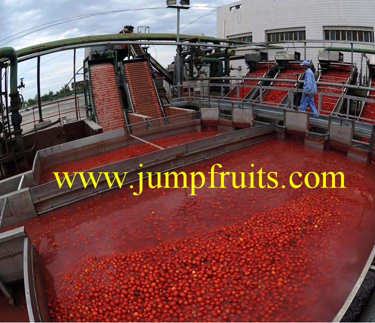 Tel/WhatsApp/Wechat: 008618018528851 Shanghai JUMP Automatic Equipments Co., Ltd is keeping leadership position in the tomato paste and concentrated apple juice processing line. We also have made brilliant achievements in other fruit& vegetable beverage equipments, such as: 1. Juice production line for orange juice, grape juice, jujube juice, coconut drink/coconut milk, pomegranate juice, watermelon juice, cranberry juice, peach juice, cantaloupe juice, papaya juice, sea buckthorn juice, orange juice, strawberry juice, mulberry juice, pineapple juice, kiwi juice, wolfberry juice, mango juice, sea buckthorn juice, exotic fruit juice, carrot juice, corn juice, guava juice, cranberry juice, blueberry juice, RRTJ, loquat juice and other juice drinks dilution filling production line 2. Can food production line for canned Peach, canned mushrooms, canned chili sauce, paste, canned arbutus, canned oranges, apples, canned pears, canned pineapple, canned green beans, canned bamboo shoots, canned cucumbers, canned carrots, canned tomato paste, canned cherries, canned cherry 3. Sauce production line for mango sauce, strawberry sauce, cranberry sauce, canned hawthorn sauce etc. We grasped proficient technology and advanced biological enzyme technology, successfully applied in more than 120 domestic and foreign jam &juice production lines and we has helped client gain excellent products and good economic benefits. Tomato paste production line Raw materials: fresh fruit(pineapple, mango, guayaba, papaya,tomato) but also can be shared with apricot and chili The final product: paste, sauce, and fruits jam Packing: bags, PET bottle, glass bottle,jar.etc Fresh tomato treatment: 0.5-500 tons/hour of fresh fruits(per customer requirement) Tomato paste output: 0.1-100 tons/hour(depends on fruit type, brix,etc.) Main Features we take advantages of the comprehensive and technical cooperation with the Italian company partner, now in fruit processing, cold breaking processing, multi effect energy saving concentrated, sleeve type sterilization and aseptic big bag canning has made domestic and unmatched technical superiority. We can provide the entire production line processing 500KG-1500 tons of raw fruit daily according to the customers. Turnkey solution. No need worry if you know little about how to carry out the plant in your country.We not only offer the equipment to you,but also provide one-stop service, from your warehouse designing (water, electricity ,staff) , worker training, machine installation and debugging, life-long after-sale service etc. Our company adheres to the purpose of "Quality and Service Branding", after many years of efforts, has set a good image in the domestic ,due to superior price, and excellent service , at the same time, the company products are also widely infiltrated into Southeast Asia, Middle East, Africa, South America, Europe and many other overseas markets. TOMATO PASTE PROCESSING LINE 1. Packing: 5-220L aseptic drums, tin cans, plastic bags, glass bottles and so on 2.The whole line composition: A: promotion system of the original fruits, cleaning system, sorting system, crushing system, pre-heating sterilization system, pulping system, vacuum concentration system, sterilization system, aseptic bag filling system B: pump → blending drum → homogenization →deaerating → sterilization machine → washing machine → filling machine → capping machine → tunnel spray sterilizer → dryer → coding → boxing 3. The final product concentration: Brix 28-30%, 30-32% cold broken and heat broken, 36-38% Main Equipments for tomato processing A. Scraper-type spray elevator Select stainless steel bracket, food-grade and hard plastic or stainless steel scraper, smoothing blade architecture to prevent the fruit jam; Using imported anti-corrosion bearings, double-sided seal; with continuously variable transmission motor, variable frequency Speed and low operating costsTitle goes here. B. Sorting machine Stainless steel roller conveyor, rotation and solution, a full range of check, no need ends. Manmade fruit platform, painted carbon steel bracket,stainless steel antiskid pedal,stainless steel fence. C. Crusher Fusing Italian technology, multiple sets of cross-blade structure, crusher size can be adjusted according to customer or specific project requirements, it will increase the juice juice rate of 2-3% relative to the traditional structure , which is suitable for production of onion sauce, carrot sauce, pepper sauce , apple sauce and other fruits and vegetables sauce and products D. Double-stage pulping machine It have tapered mesh structure and the gap with load can be adjusted, frequency control, so that the juice will be cleaner; Internal mesh aperture are based on customer or specific project requirements to order E. Evaporator Single-effect, double-effect,triple-effect and multi-effect evaporator, which will save more energy; Under vacuum, continuous low temperature cycle heating to maximize the protection of nutrients in the material as well as the originals. There are steam recovery system and double times condensate system, it can reduce the consumption of steam; F. Sterilization machine Having obtained nine patented technology, take full advantages of the material's own heat exchange to save energy-- about 40% F. Filling machine Adopt Italian technology, sub-head and double-headed, continuous filling, reduce return; Using steam injection to sterilize, to ensure filling in aseptic state , the shelf life of product will twp years at room temperature ; In the filling process,using turntable lifting mode to avoid secondary pollution. Service Pre-sales service We can suggest customer the most suitable machine according to their formula and Raw material. "Design and development", "manufacturing", "installation and commissioning", "technical training" and "after sales service". We can introduce you supplier of raw material, bottles, labels etc. Welcome you to our production wor