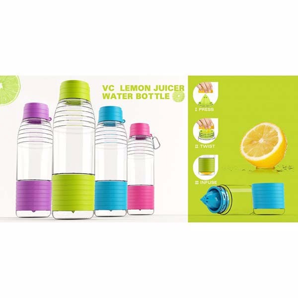 چندین نکته جذاب در طراحی این بطری آب مورد توجه قرار گرفته که آن را تبدیل به یک هدیه تبلیغاتی خلاق، مسافرتی و زیبا نموده است. اول چند کاره بودن این بطری، به طور مثال درسفر یا هنگام کوهنوردی زمانی که بدن شما احتیاج به آب و همچنین نوشیدن مقداری آب لیمو تازه جهت رفع عطش دارد، این امکان در دسترس شما خواهد بود. در یک سر این بطری آبمیوه گیری تعبیه شده تا شما بتوانید به آسانی در هر مکان از یک نوشیدنی تازه استفاده نمایید. نکته دوم استفاد ازقلاب در ساخت این وسیله است که آن را کاملا مسافرتی نموده است.