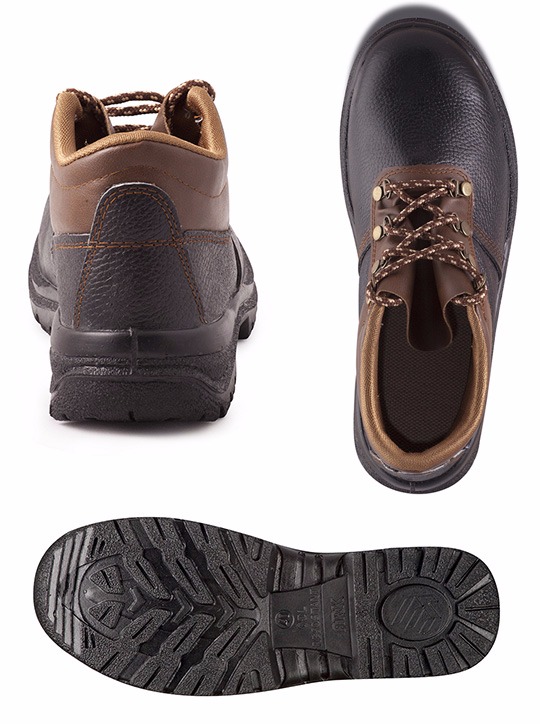 رویه کفش از چرم گاوی چاپی 2میلی،سرپنجه آهنی با استاندارد ملی ایران مقاوم به 200 ژول ضربه پذیری،زیره پی یو،مقاومت زیره در برابر حلالهای نفتی و روغنی ،تاییده وزارت کار و امور اجتماعی، آستری راشل ،سایز بندی کفش استاندارد از 40-45،سبک راحت و انعظاف پذیر