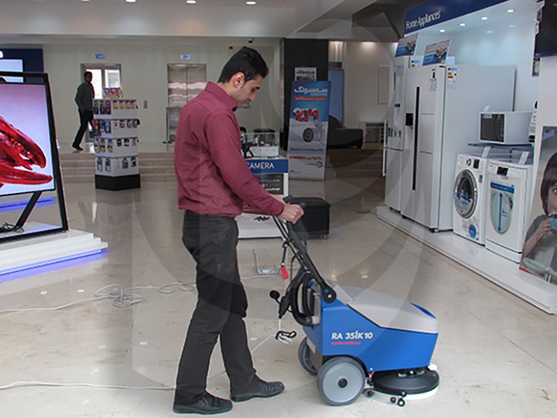 اسکرابر مدل RA35K10 یک دستگاه کف شوی صنعتی، ساخت کمپانی Columbus آلمان است که با برخورداری از طراحی فشرده گزینه ایده آلی برای نظافت و شستشوی سطوح کف اماکن کوچک و معابر و راهرو های باریک و متراکم بوده و به راحتی به گوشه ها و کناره ها دسترسی خواهد داشت. اسکرابر مدل RA35K10، از انرژی الکتریکی به عنوان نیرو محرکه دستگاه استفاده نموده و با اتصال کابل به پریز برق این انرژی را تامین می نماید. این دستگاه به واسطه استفاده از کابل برق و اتصال به منبع انرژی الکتریکی، توانایی ساعت ها کار مداوم را دارد. پهنای شستشوی این دستگاه برابر با 350 میلیمتر بوده و ظرفیت مخازن آب تمیز و آب کثیف آن به ترتیب برابر با 10 و 5/11 لیتر می باشد.از آنجایی که احتمال خرابی قطعات الکتریکی بالا بوده و تعمیر و نگهداری از آنها هزینه های بالایی دارد، طراحی دستگاه های اسکرابر شرکت Columbus بر پایه استفاده حداقلی از سیستم های الکترونیکی بنا نهاده شده است تا از خرابی های متداول و پر هزینه مرتبط با قطعات الکترونیکی معمانعت به عمل آید. استفاده از سیستم های مکانیکی به جای سیستم های الکترونیکی در این اسکرابر، موجب افزایش ضریب صنعتی بودن دستگاه و افزایش عمر مفید آن گردیده است. این دستگاه کف شوی بعلت داشتن کیفیت بالای تولید، موفق به کسب استاندارد CE اروپا و گواهی بهداشتی HACCP شده است. قابلیت جا به جایی و قدرت مانور اسکرابر دستی RA35K10 به واسطه ابعاد کوچک و فشرده این دستگاه بسیار بالا بوده و وزن پایین آن، موجب سهولت جا به جایی در بین طبقات ساختمان های فاقد آسانسور شده است. علاوه بر این، استفاده از چرخ های بزرگ در قسمت انتهایی این مدل از کف شوی دستی موجب سهولت جا به جایی آن در راه پله شده است. دسته تا شوی کف شوی RA35K10 موجب کاهش فضای لازم برای نگهداری و حمل و نقل آسان دستگاه توسط ماشین گردیده است.