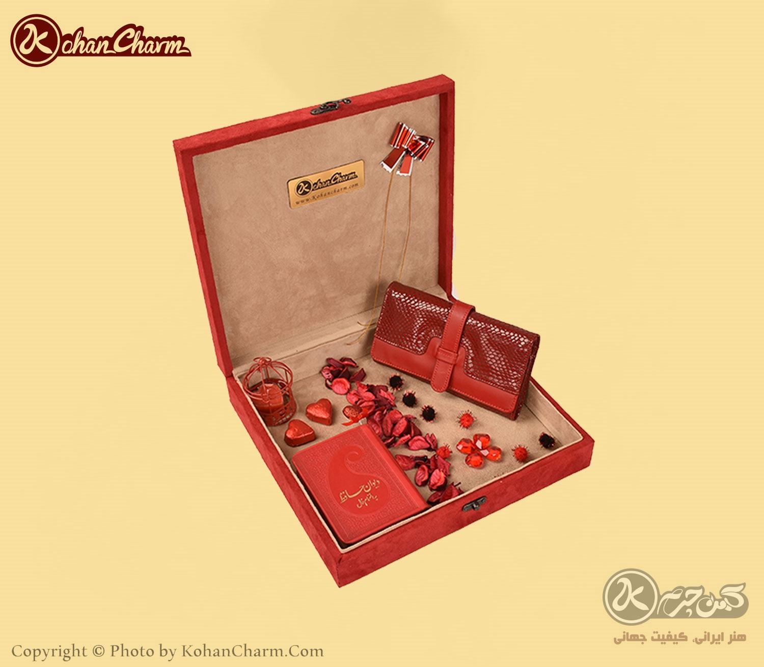 ست هدیه چرم زنانه و دخترانه، ست هدیه کهن چرم مدل MK121-2، کیف پول به همراه دیوان حافظ