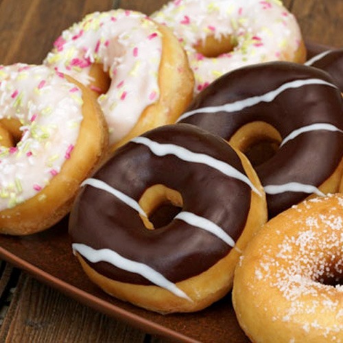 پیشنهاد: در صورت تمایل می توانید مقداری شکلات را ذوب کرده و روی دونات ها بریزید.