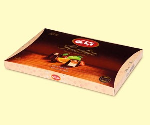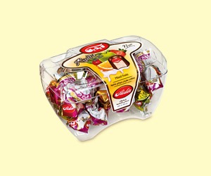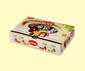 شکلات با مغز مربای سیب، مربای پرتقال، مربای گیلاس و مربای توت فرنگی در بسته بندی با وزن های 350، 354، 380 و 400 گرمی