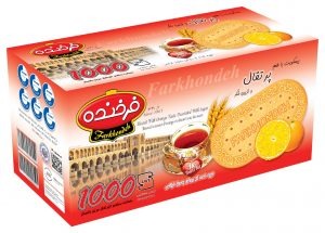 ترکیبات: آرد گندم ـ روغن بدون ترانس ـ شکر سفید ـ شربت اینورت ـ پودر کامل تخم مرغ ـ لسیتین(E322) ـ بیکربنات سدیم(E500) ـ نمک خوراکی ـ اسانس پرتقال – ژل امولسی فایر – آب آشامیدنی