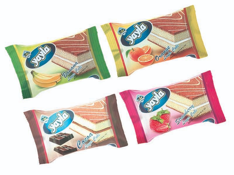 کیک لایه ای کاکائویی، پرتقالی، موزی، و توت فرنگی