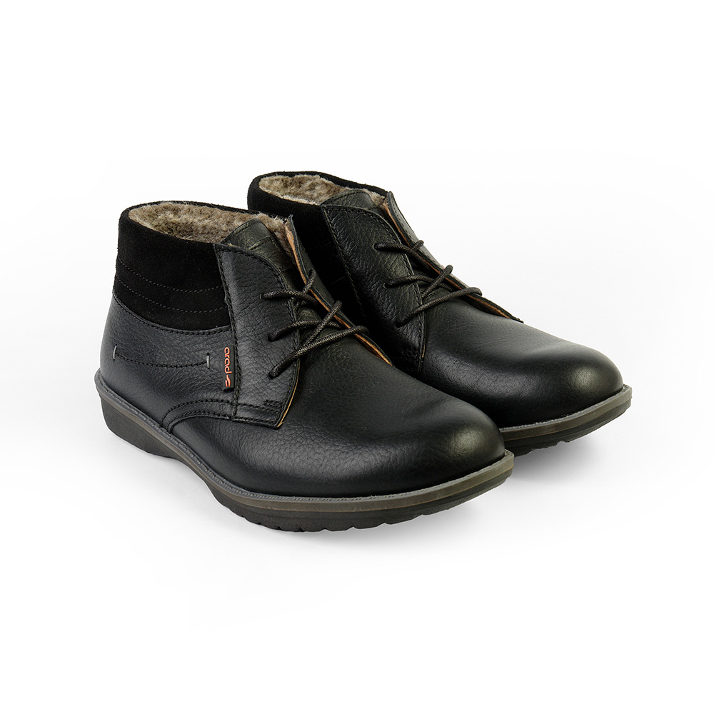 نیم بوت مردانه یوکان خزدار از سری کفشهای فصول سرد بوده و محصول مجموعه تولیدی “کفش آراد” است. این محصول زیبا و شیک از جنس چرم طبیعی بوده و در رنگهای مشکی و قهوه ای تولید و ارائه میشود. پتانسیل این محصول در میزان تاب آوری و راحتی در سطح عالی برآورد شده و مناسب استفاده 12 ساعت در روز است.