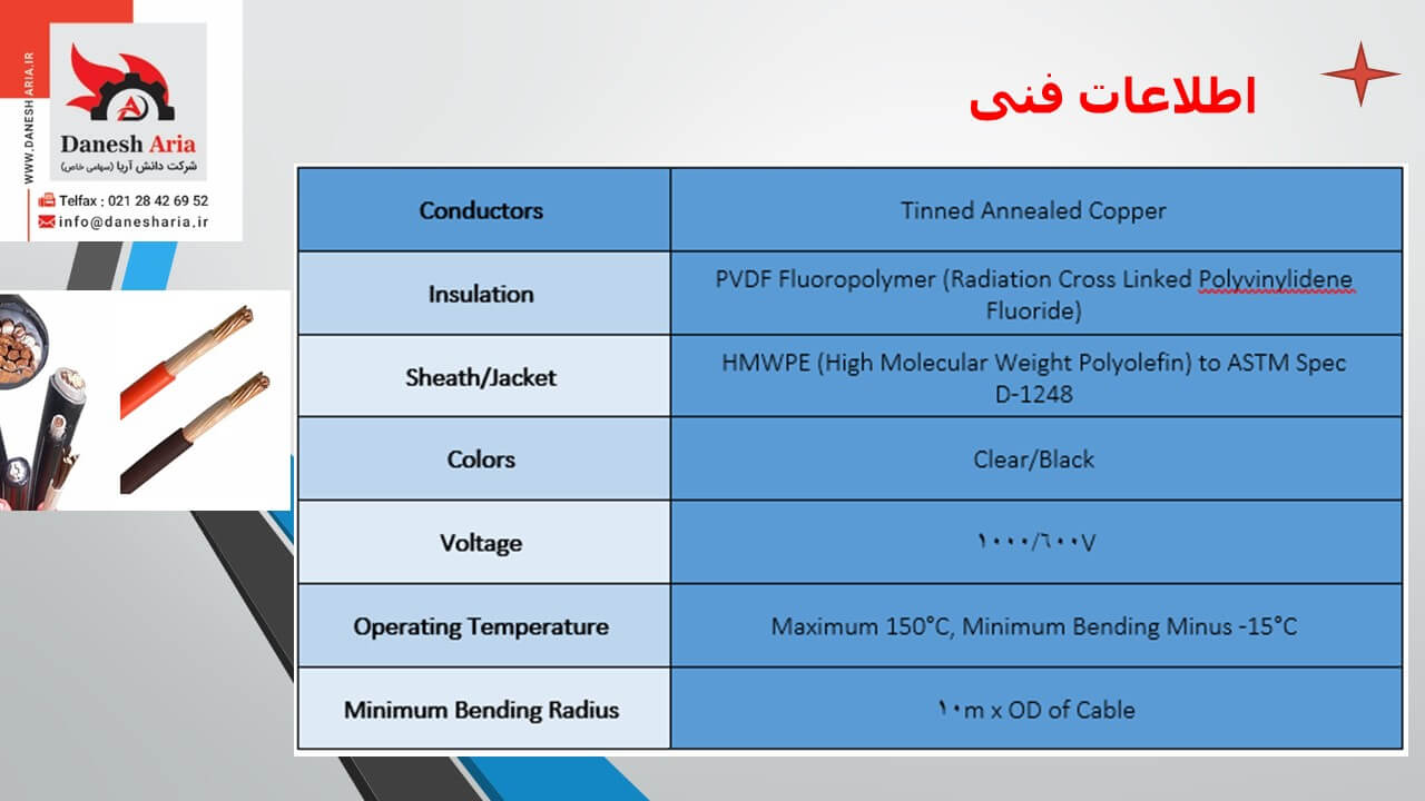 لازم به ذکر است که این کابل ها دارای مقاومت عالی به محیط های حاوی یون کلر و گاز H2S و نیز محیط حاوی گاز اکسیژن و کلر میباشند. برند تامینی شرکت دانش آریا برند اروپایی ozgoven   (ترکیه ای) که به علت تحریم های موجود  با نام تجاری demir    در ایران شناخته میشود و قابلیت دریافت استعلام از شرکت اصلی ozgoven   وجود دارد.