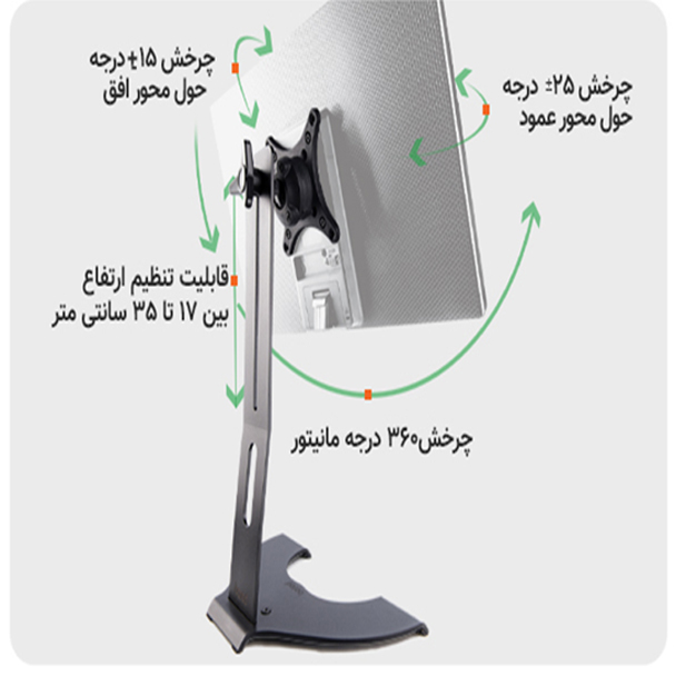 پایه مانتیور سام در جهت حفظ سلامتی و ارگونومی مناسب بدن تولید شده است. از مزایای استفاده از این پایه می توان به این موارد اشاره کرد : جلوگیری از ابتلا به گردن درد، کمک به حفظ الگوی صحیح نشستن ، کاهش فشار وارد بر عضلات و مهره های گردن ، کاهش ابتلا به سردردهای گردنی ، جلوگیری از احتمال ابتلا به دیسک گردن این محصول برای چه افرادی مناسب است؟ افراد مبتلا به آرتروز گردن، فتق دیسک گردن و سردردهای گردنی افرادی که ساعت های طولانی از کامپیوتر استفاده می کنند. افرادی که در ناحیه گردن احساس درد دارند. افرادی که می خواهند از دردهای اسکلتی عضلانی پیشگیری کنند. این محصول برای چه مانیتورهایی مناسب است؟ مانیتورهایی تا وزن 4kg و ابعاد کمتر از 26 اینچ مانیتورهای دارای استاندارد VESA: مانیتورهایی که در پشت آنها 4 عدد پیچ برای نصب پایه وجود دارد.